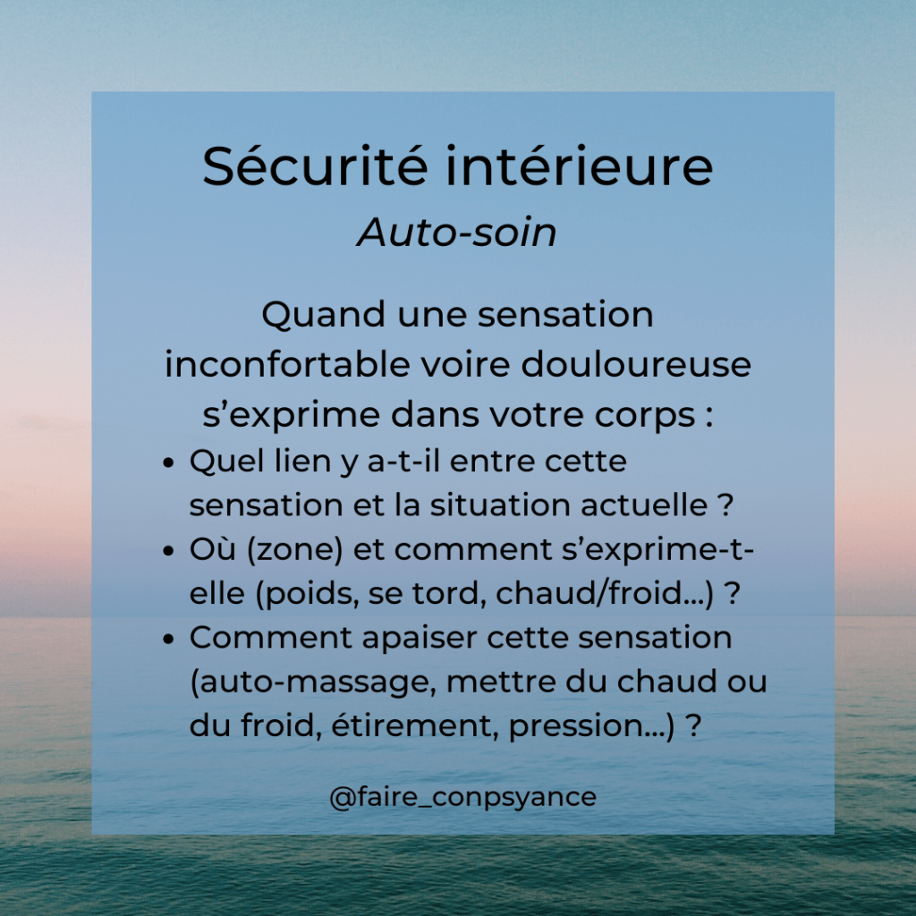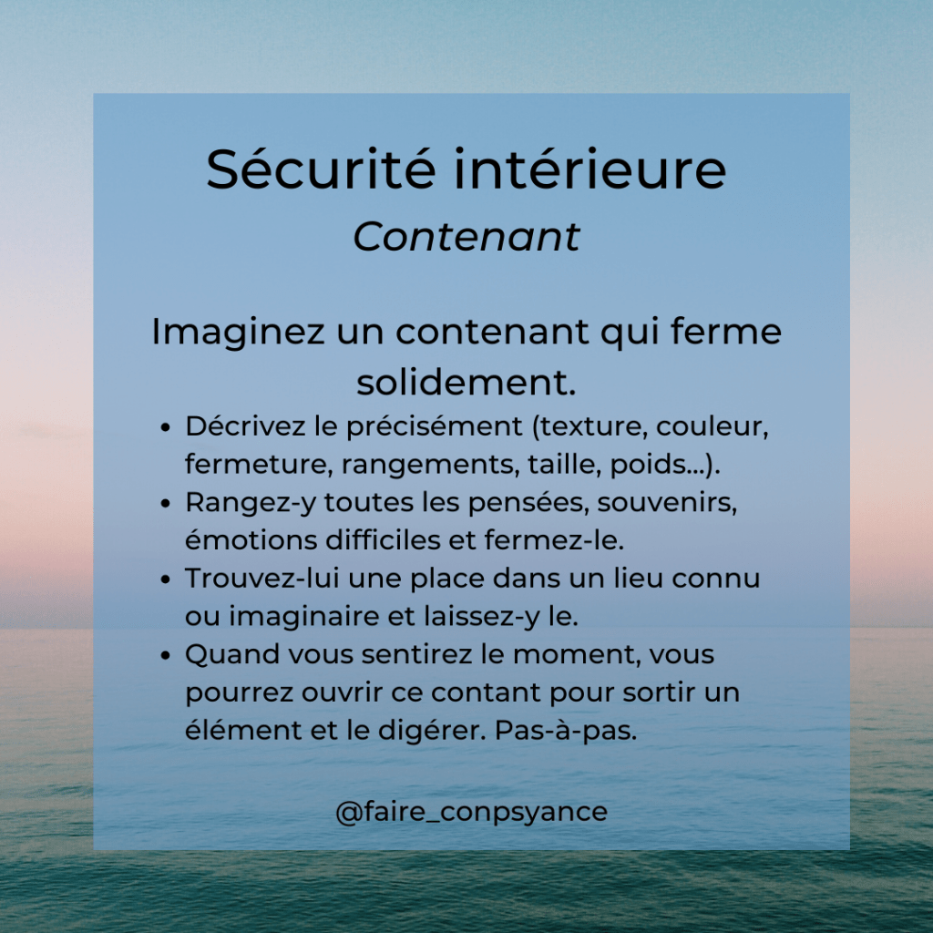 Des exercices existent pour renforcer son harmonie vers plus de sécurité intérieure. Voici ceux utilisés avec mes patients et que vous pouvez pratiquer chez vous ! Ils sont basés sur des approches éprouvées comme l’EMDR et parfois co-construits ensemble.